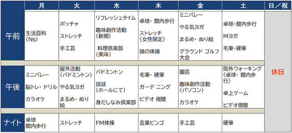 プログラムの内容はデイケア・デイナイトケアと変わりません。