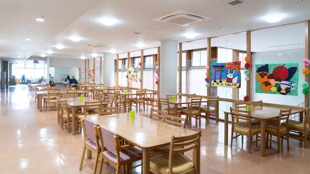 また、生活環境も中庭で過ごせるような作りで開放的な空間になっています。人との触れ合いを大切にし高齢者を寝たきりや孤独にならないことを常に意識して様々な職種が協力しながら日常生活をサポートしています。